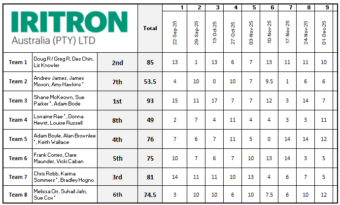 2022 Autumn competition – Monday night results