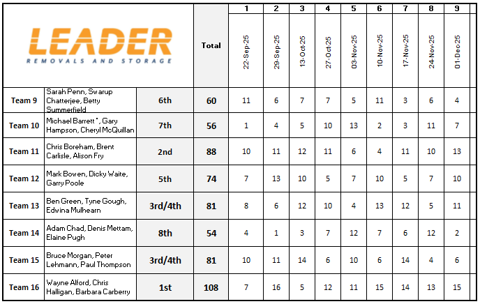Wednesday Draw and teams – Autumn 2022