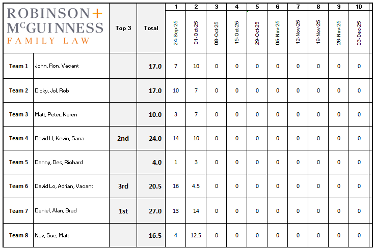 ACT MASTERS 2024 MARCH TOURNAMENT – RESULTS