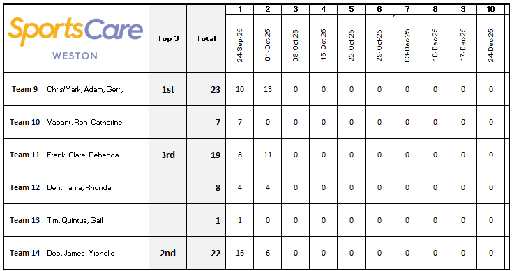 WINTER-A 2023 – WEDNESDAY NIGHT – RESULTS